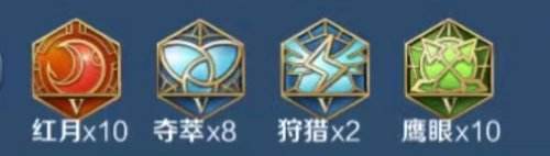 1、铭文顺序:红色红月、蓝色夺萃*8/狩猎*2、绿色鹰眼