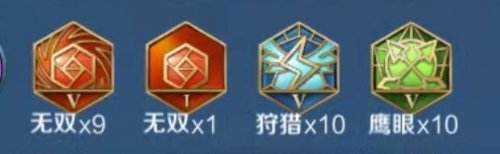 1、铭文顺序:红色无双、绿色鹰眼、蓝色狩猎