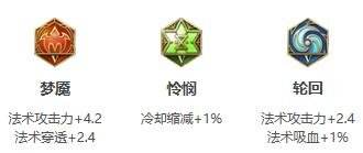 1、铭文顺序:蓝色轮回、绿色怜悯、红色梦魇。