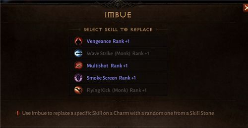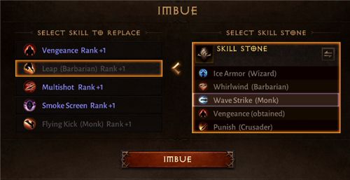 4.选中技能石【其中的一个技能条】,点击imbue。