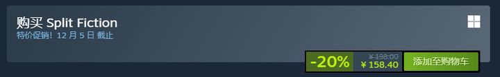 进入《双影奇境》的多重世界,体验惊心动魄的时刻,完成由《双人成行》工作室打造的突破边界的合作冒险。 在 12 月 4 日大促结束前购买游戏,立享八折优惠!